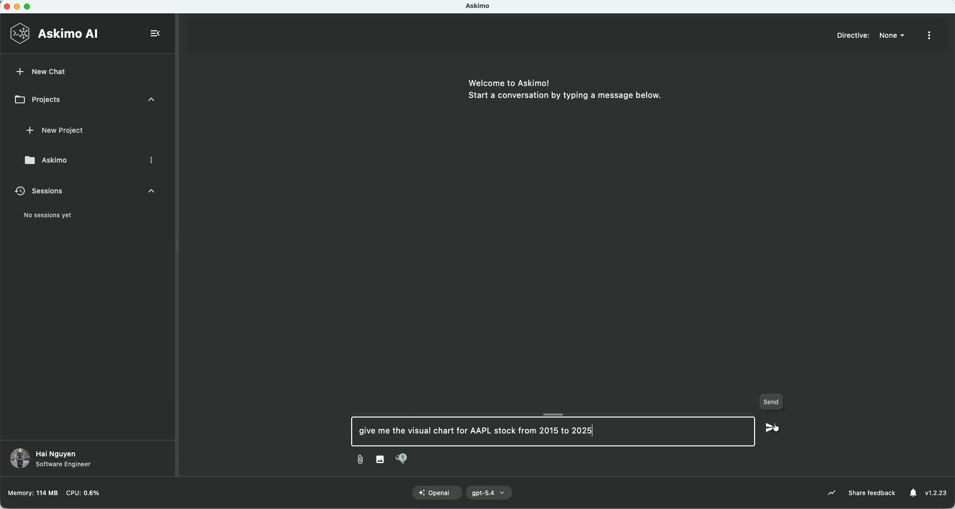 After installation, open Askimo, configure a provider (API key for cloud models, or point it at a running Ollama instance), and start a session. Setup guide →